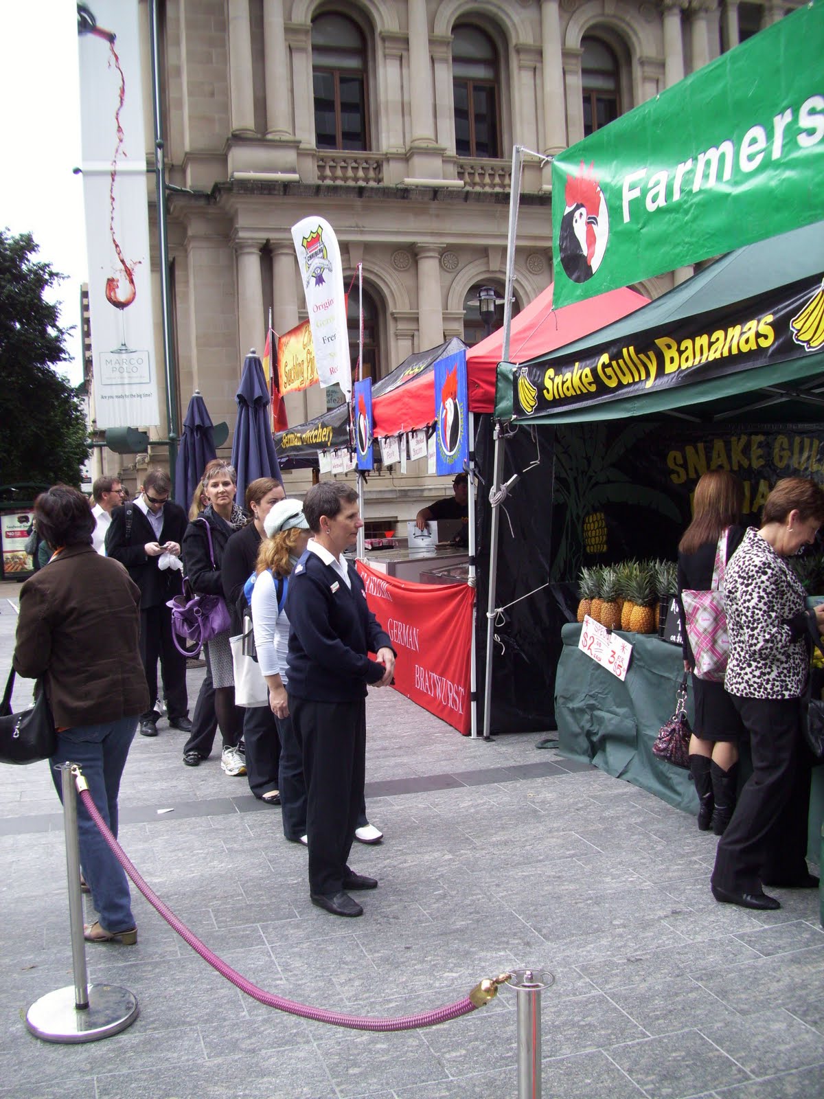 For me, no great loss. For the mothers of small children and gym junkies of Brisbane – it’s a trying time. Banana supplies are low and prices have skyrocketed to over $15 a kilo. This is why you see queues at the City Farmer’s Market every Wednesday morning. The little golden beauties are on sale for between $5 and $10 a kilo. Orderly queues form as early as 7am (or so I am told) and a recent addition is the crowd control with witches hats, a velvet rope and a ‘bouncer’ to make sure nobody grabs a bunch and runs. They are always all sold out by morning tea.