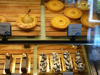 We visited for afternoon tea and were astonished at the variety of cakes and pastries on offer. Equally astonishing were the minuscule prices. Can you imagine paying 80c for a Foret Noir Eclair (Black Forest) at Coles, let alone at a high quality Patisserie? Or how about a Lemon Flan for $1.30? No, I didn’t think so.
