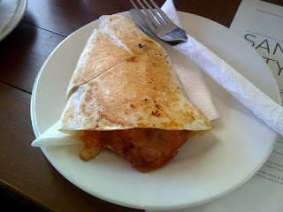 Coffees were duly dispatched, with the bacon and egg wrap ($7.50) not far behind. The coffee serves are very generous – a medium coffee is $3.50 but is in fact the equivalent to most large sizes. I’m often critical of coffee that is served luke warm and needs to be gulped down. On the Saturday, I found the coffee slightly better than warm however on my second visit the temperature was much better So, if you’re coffee temperature is not quite right, I’d ask for another.