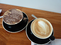 House made baked beans were served in a cocotte, straight from the oven and deemed substantial and enjoyable. The mushrooms and eggs came with two well poached eggs but the fetta was not discernible. Either it had melted into the pan fried mushrooms of they had forgot to scatter it on. The meal was deemed enjoyable but lacking some oomph so maybe some more fetta or another ingredient such as some caramelised onions could make it more exciting. The mushroom eaters said they enjoyed their meal but would order something different next time. Coffee and drinks ordered throughout the meal turned up promptly and although the place became busier, we were never forgotten.