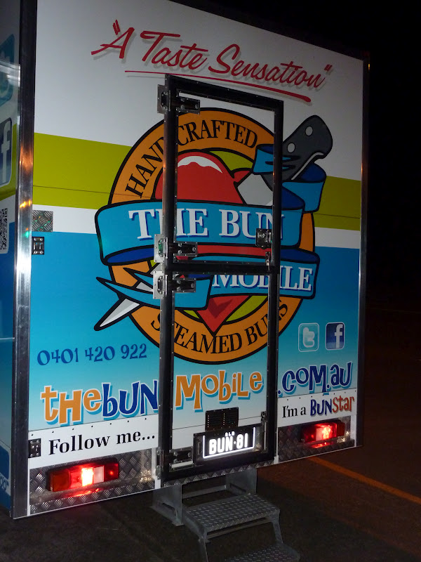 Part of the fun of food trucks is finding them. By virtue of the fact they are trucks, they are a moveable feast. The trucks might have a few favourite haunts but can turn up anywhere at any time. Some post schedules on their websites, others use social networking to let people know where they are serving. And so it was on a Sunday evening at 6pm that I saw a tweet from the Bun Mobile, letting me know that they were on a footpath in Greenslopes.