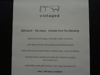 Vintaged is large and there’s a lot going on. They’ve reclaimed some of the dead space in the walkway to put in more tables, Victoria’s is now a private dining room and a Chef’s Table has been added where you and eight of your closest friends can be right up front where the action is and watch the chef prepare your meal. There’s a great looking wine room that dominates the restaurant, where you are welcome to go in and choose your wine in the company of one of the wait staff, who have all been sommelier trained. Impressive as the wine room is, the cheese trolley that resides in the wine room is even more thrilling, to me at least.