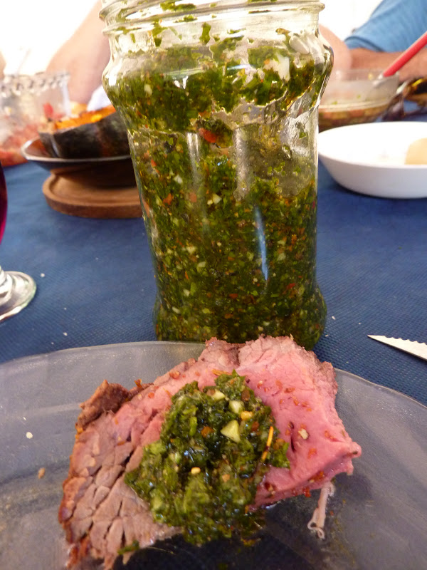 My old friend, Chimichurri, turned up on the table. Despite the fact that every article and post you read tells you that Chimichurri is the ubiquitous sauce that is seen throughout the whole of Argentina, this was the only time I saw it in my travels. A home made version, it was stored in jars, just as I had done when I made my own version.