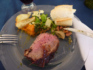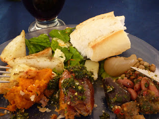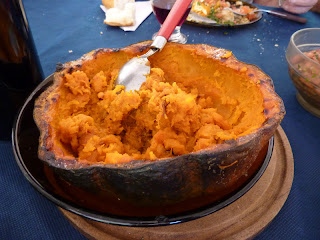 As you would expect, there were huge hunks of beef joined by beef ribs and fat little home made sausages bubbling on the grill. As a nod to the one vegetarian who bravely joined this meat fest, some delicious salads were also on offer including whole pumpkins that had also been baked on the grill.
