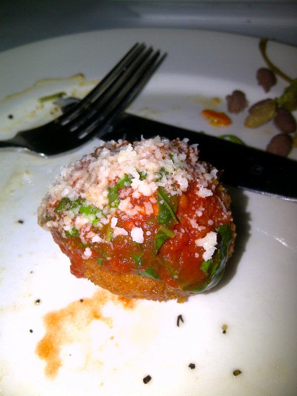 There was more than enough for the group, however Tony checked in (it would probably be a waiter for you lesser mortals) to see if we wanted another dish before we moved on to dessert. Dessert was a divine semifreddo al torrone – hazelnut, nougat semifreddo w crostoli and espresso sauce. No need to share this one as everyone got there own! This shared dining concept was easy and fun. I knew only one of the people at my table yet the conversation flowed freely and people were able to choose how much they wanted and go back to previous dishes (which are never cleared unless they are empty) to compare notes.