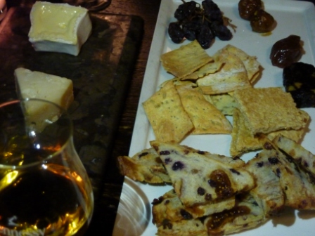 We share a pair of desserts and a cheese plate. We select a Rhubarb, Pear & Walnut Crumble served with a Blond Valrhona Sauce whilst the others go for a ‘Malt’ Brownie with Salted Caramel and Peanut Brittle. The crumble is reminiscent of something your mum or grandmother may make if they got their hands on some Valrhona chocolate. Sweet and tart fruit with a nice sandy crumble of top. Comfort food at its best. The Malt Brownie is very impressive when it comes to the table with large shards of brittle sitting atop a layered brownie. They are polished off in record time and it’s on to the cheese. I ask the waiter what cheeses are on offer and after a brief pause for consideration, he advises there’s a chevre, cheddar, brie and blue but no hint of styles or provenance. We opt for the chevre which turns out to be quite a hard style and a gooey brie served with excellent bread, fruit and muscatel accompaniments.