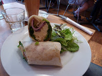 Martini is a firm favourite and I never tire of their extensive menu. When I say extensive, I’m talking about 25+ menu items on their all day breakfast menu. All of them tempting, many of them sampled and so hard to go past the favourites to break new ground. There some great ideas such as Pumpkin Polenta Eggs; Balsamic Mushrooms w Feta on Sourdough; and, Vegetarian Montsro with roasted pumpkin, eggplant, baked beans, mushrooms, hashbrowns and more. There is a heavy emphasis on vegetarian and organic and all eggs are free range. Plenty of meat for the carnivores though. On this day, I went for the Corn Cakes w Poached Eggs, Spinach & Bacon whilst the other two orders at the table were the South Sydney Eggs w Pesto and, an enormous Breakfast Wrap w Scrambled Eggs, Bacon & Spinach.
