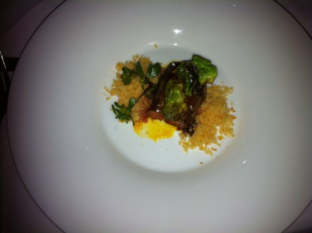 Stand out dishes for me were the ‘Pine, Curd & Needles’ – represented by Pine Mushrooms, Goat’s Curd and ‘Needles’ of Samphire; and, ‘Beef, Yolk, Brussel Sprout’ – the most savoury cube of beef I think I have ever had accompanied by a unctuous egg dressing and shaved (flaked?) Brussel Sprout. As far as I’m concerned, this is the only way Brussel Sprouts should be served. If they can’t me served to you on fine china in a high class restaurant in the company of a world renowned food critic and food writer, then just don’t bother.