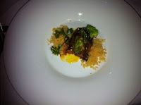 We started with the ‘Foie Gras, Scallop and Hazelnut’ presented. The pairing with Hazelnut was sublime but I can’t say there was much taste from the Scallop. It was overshadowed by the richness of the Foie Gras. Foie Gras is a guilty treat. I love it but it’s not good for the heart or waistline and generally not ethically produced. I no longer order it from menus but if I’m forced to have it as part of a degustation, I’m not going to say ‘no’.