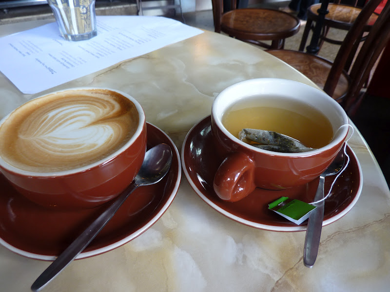 Medium blend, smooth and served at a good temperature. The staff were unsure about what teas they sold and we couldn’t find them listed. In the end, someone worked out that they sold green tea. I was expecting that it would arrive in a pot or at the very least, in a tea infuser so a limp tea bag dangling was a bit of a let down. Medium coffee – $4.