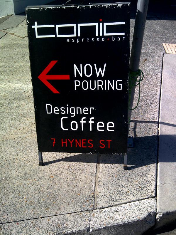 But, your not there for the ambiance, you’re there for the coffee. And how good is that coffee? Very good indeed! I have taken to walking past my usual place and going the extra distance to grab Tonic’s house blend. I find it slightly sweet, full flavoured, no bitterness and best of all, it’s not served at the ridiculous luke warm temperature that has come to haunt me at many coffee shops. Coffee should be lingered over, not gulped down before it goes cold. The description says ‘Tonic’s No. 1 blend is the perfect all rounder coffee. Balanced with strong chocolate and dark caramel notes that are highlighted in milk based drinks. While subtle and acidic flavours give enough variety to also be enjoyed as a black coffee.’ Yeah, yeah, whatever. All I know is that it tastes great and finally, finally, I’ve found a coffee that suits me and is worth the walk.