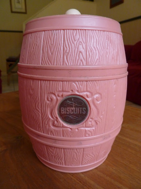 Now for the classy section of the post. The ‘Embassy’ brand pink, plastic biscuit barrel. Probably 1970’s, this is a curious mix of vinyl plastic barrel, hard platic lid and non matching pink plastic knob. Embassy is a old brand that Coles used to produce and this is quite possibly the last piece of plastic ever manufactured in Australia (so proudly stamped on the bottom). I think it’s highly likely that these would have been filled with biscuits and shrink wrapped as part of a Christmas range. It is in no way air tight so it will have a new life as an ice bucket or for holding matchbooks collected in my travels. – $2