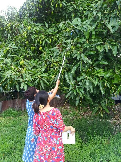 On taste at the party was a selection of chutneys, relishes such as the famous Piment Limon Vert and sauces including a Tamarind and a Chinese influenced Sweet & Sour Chiili. All items are made by hand in a commercial kitchen. Ingredients are seasonal and fresh. In the days before the tasting, I had seen photos of Ranee and her daughter (who had been pressed into service), harvesting small green mangoes from a neighbours tree.