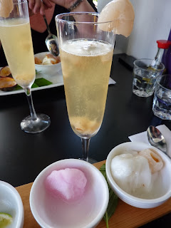 By this time I was on to the Lychee Champagne Cocktails with an even deadlier combination of Champagne and lychee liqueur. It didn’t take much to convince Jenny to join me on the slippery slope. Refreshing sorbets (including a decidedly non Asian rose petal flavour) and the biggest deep fried ice cream ball I have ever seen, followed.